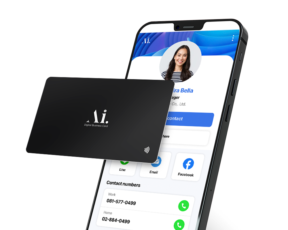 สามารถแชร์นามบัตรของท่านให้กับผู้ติดต่อ ได้โดยไร้การสัมผัส ผ่านทาง NFC หรือ QRcode