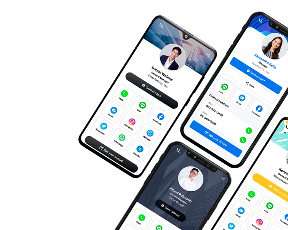 สามารถปรับแต่งนามบัตรของคุณ ได้ทุกที่ ทุกเวลา ไม่ว่าจะบนโทรศัพท์มือถือ หรือคอมพิวเตอร์ ปรับแต่งรูปภาพดีไซน์ให้ตรงกับ ภาพลักษณ์บริษัทของคุณได้